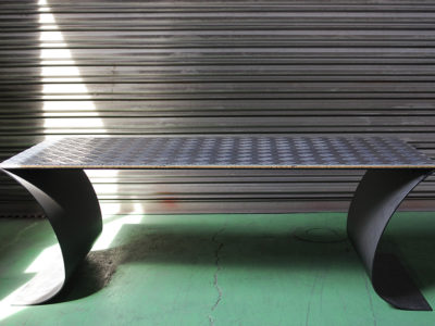 | 素材/加工方法 | 鉄(座面はアルミ縞鋼板)/ 切断加工、曲げ加工、溶接加工 |