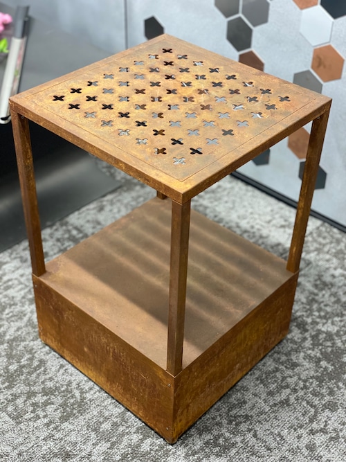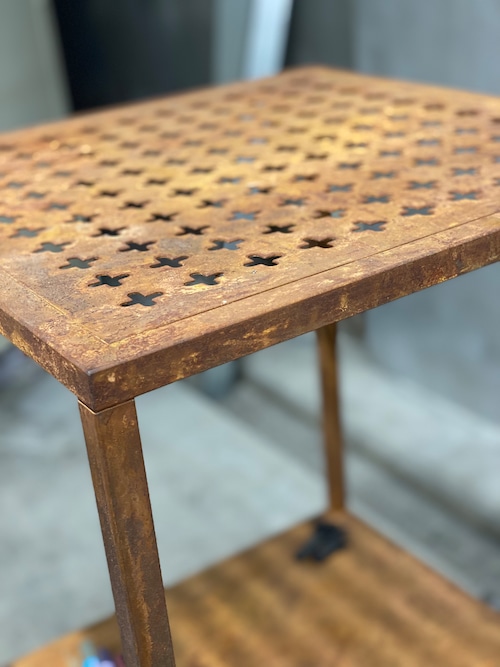 鉄で加工をした2段ラックに、私たちが得意とするエイジング仕上げを施しています。